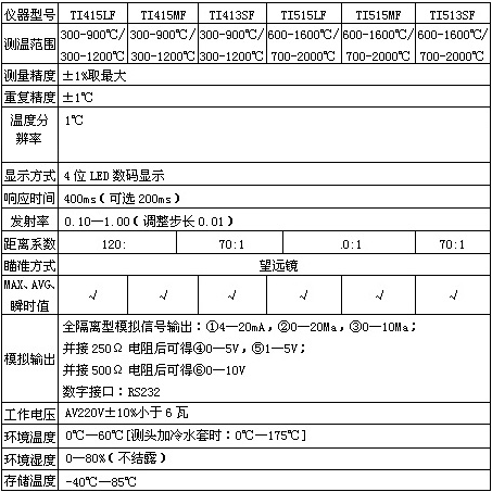 • 關鍵參數(shù):測溫范圍:300℃-900℃/300℃-1200℃/;測量精度:讀數(shù)值的±1%;重復精度:讀數(shù)值的±1℃.輻射率:0.10~1.00; 距離系數(shù):70:1.