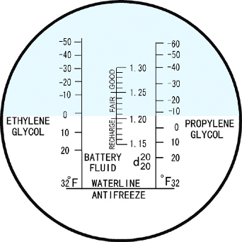 型號(hào):RHA-503C 這種型號(hào)可以測(cè)量以乙二醇和丙二醇兩者為基的防凍系統(tǒng)的冰點(diǎn).它還可以檢查蓄電池內(nèi)電解的比重及使用狀態(tài)。其冰點(diǎn)值以華氏溫度(°F)標(biāo)定