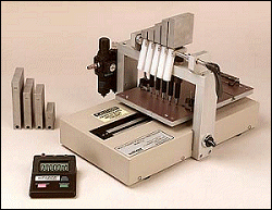 本儀器基于以下汽車標(biāo)準(zhǔn)設(shè)計(jì)(福特 BN 108-13; 通用 GMN3943; 戴姆勒克萊斯勒 LP-463DD-18-01), 通常有五個(gè)觸點(diǎn)。 儀器含有氣動(dòng)和可安裝樣品的傳動(dòng)裝置。傳動(dòng)裝置直線行走,有一個(gè)旋鈕控制。可用于一個(gè)或多個(gè)樣品通行檢測 。電子計(jì)時(shí)器顯示速度,可以通過改變空氣壓力來控制這個(gè)速度。 儀器支架支持五個(gè)獨(dú)立的花鍵桿,這樣可以為磨針加載連續(xù)垂直的力(磨針可互換,直徑1.0mm或7.0mm,為半圓型頭)。支架的手柄可控制它懸臂的高低,五個(gè)支撐架可使一個(gè)或更多懸臂移動(dòng)到不礙事的地方,從而觸碰不到測試中的樣本。 不同的重量塊狀在懸臂的上端,保證作用在樣品表面上的是標(biāo)準(zhǔn)大小的力。每套儀器含有的重量快有: 2N, 3N, 4N, 5N, 6N, 7N, 10N, 15N 和 20N 。另外還可購得8N, 13N, 18N 和 25N的重量塊。. 盡管通常情況下22mm以內(nèi)厚度的扁平樣品都能測,但前提是樣品邊緣不要太厚,樣品不要太軟或固定得足夠好。標(biāo)配里含有帶彈簧的樣品固定裝置,它可以固定在樣品臺(tái)的邊緣,以獲得更好的機(jī)動(dòng)性。針對(duì)更厚的樣品,可以選購"可移動(dòng)的"緊固夾。 儀器的標(biāo)準(zhǔn)配置: | |||||||||