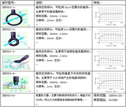 - 關鍵參數(shù):SRF503 SIGLENT近場探頭套件主要用于電子產品的電磁場測量,實現(xiàn)干擾源快速位,多種形狀的探頭,寬頻率范圍,可以完成多種的電磁場測試任務。包括四根近場探頭和一個配套使用的放大器,放大器增益約20dB,可提高系統(tǒng)測試靈敏度!廣泛應用于檢測器件或者是表面的磁場方向及強度;機箱、線纜、PCB模塊等磁場泄露情況;甚至可以精確到IC引腳以及具體的走線,從而判斷干擾產生的原因,提高產品設計水平,縮短產品開發(fā)周期。
