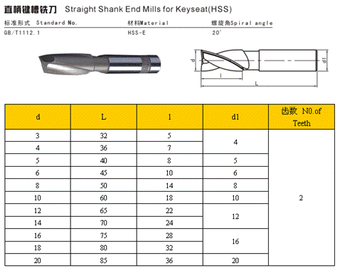 - 儀器名稱:直柄鍵槽銑刀