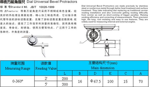 - 儀器名稱:帶表萬能角度尺