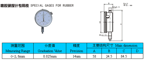 - 儀器名稱:橡膠硬度計專用表