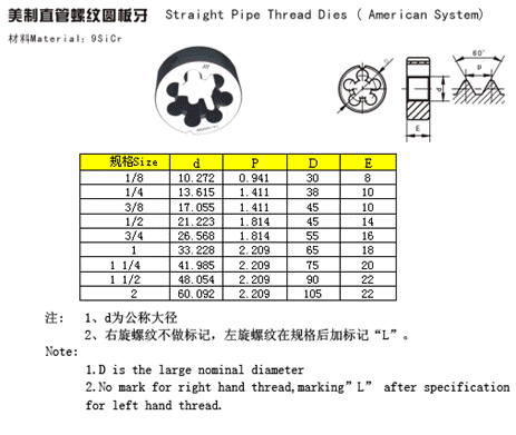 美制直管螺紋圓板牙