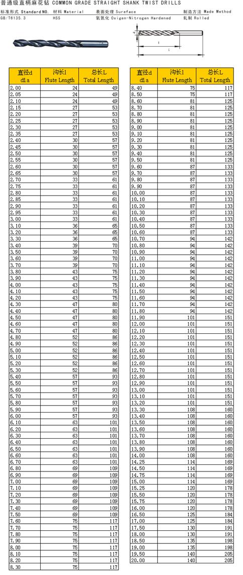 - 儀器名稱:普通級(jí)直麻花鉆