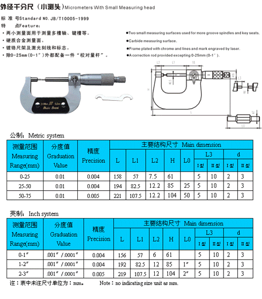 外徑千分尺(小測頭)