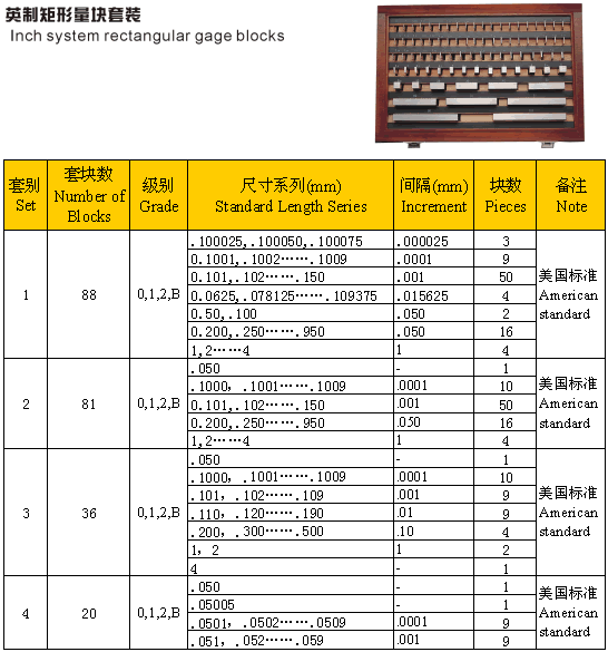 英制矩形量塊套裝
