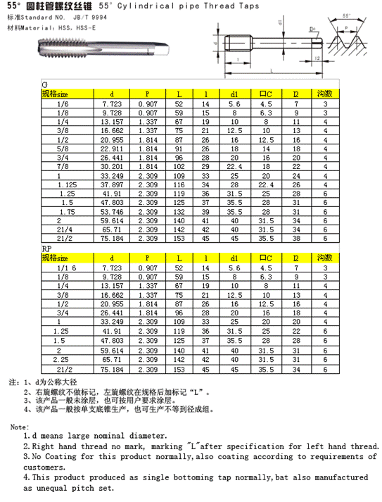 55°圓柱管絲錐