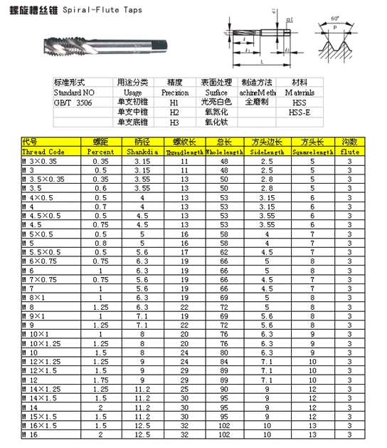 - 儀器名稱:螺旋槽絲錐