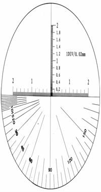 3 、本顯微鏡對準觀察物在調(diào)焦清晰時,本顯微鏡刻度尺上的1小格等于實際尺寸